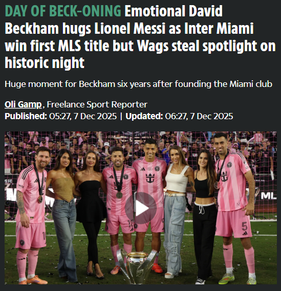 Timothy Thompson+FollowBeckham & Messi Seal Inter Miami’s MLS Cup DreamAfter 11 years of hustle, Golden Balls finally got his Hollywood ending! David Beckham’s Inter Miami clinched their first MLS Cup, with King Leo orchestrating the attack and notching key assists in a 3-1 win over Vancouver. The celebrations were pure Beckham family pride—except for Brooklyn’s absence, which fans couldn’t help but notice. Does this Cup win cement Miami as the new MLS powerhouse? Let’s hear your takes! #Sports #Soccer #InterMiami00Share