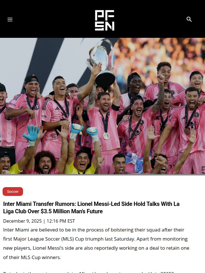 Timothy Thompson+FollowHerons Eye $3.5M Allende After MLS Cup WinBig news for Herons fans! After lifting their first MLS Cup, King Leo and Inter Miami are reportedly in talks to keep Tadeo Allende, the $3.5M Argentine forward who was a breakout star on loan from Celta Vigo. Allende’s clutch goal in the final and 24-goal season have the front office eager to make his stay permanent. Could this move cement Miami’s dominance in MLS? #Sports #Soccer #InterMiami00Share