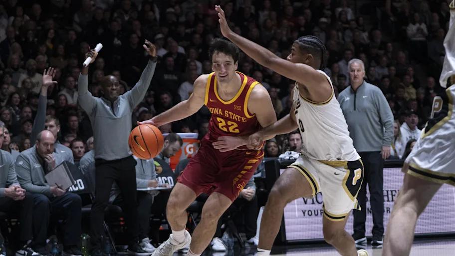 GalacticGiraffe+FollowIowa State shocks Purdue with historic routIowa State just pulled off one of the most jaw-dropping upsets in recent college basketball memory, crushing No. 1 Purdue on their own court by 23 points. The Cyclones didn’t just win—they completely took over Mackey Arena, silencing the crowd and sending fans home early. Milan Momcilovic led the charge with 20 points, and Iowa State’s team chemistry and red-hot shooting made them look like true title contenders. Purdue hadn’t been beaten this badly at home in a nonconference game—ever. Is it time to start talking about Iowa State as a national championship favorite? #Sports #IowaState #PurdueBasketball00Share