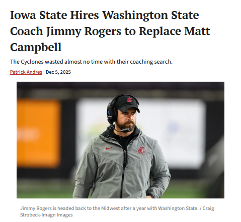 EchoingEagle+FollowIowa State’s bold move: Jimmy Rogers in, Campbell outIowa State just made a huge play by bringing in Jimmy Rogers from Washington State to take over as head football coach after Matt Campbell’s departure to Penn State. Rogers is only 38 but already has a national title under his belt from his time at South Dakota State. Fans are buzzing about whether he can keep the Cyclones’ momentum going or even take them to new heights. With Campbell leaving such a big legacy, all eyes are on Rogers to see how he’ll shape the future of Iowa State football. What do you think—will this fresh start pay off? #Sports #IowaState #JimmyRogers00Share
