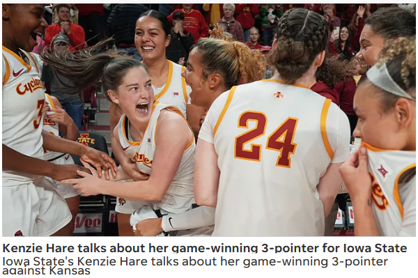 Ryan Lopez+FollowLast-second 3 lifts Iowa State over KansasKenzie Hare’s buzzer-beating three-pointer sent Hilton Coliseum into a frenzy as Iowa State’s women’s basketball team edged out Kansas 79-76 in a heart-stopping Big 12 opener. Despite scoring only three points, Hare delivered when it mattered most, capping off a wild game full of lead changes and clutch plays. Audi Crooks dominated with 41 points, but it was Hare’s shot that sealed the Cyclones’ 13th straight win. Moments like this are what make college basketball so thrilling—what’s your take on trusting a role player with the game on the line? #Sports #Basketball #IowaState00Share