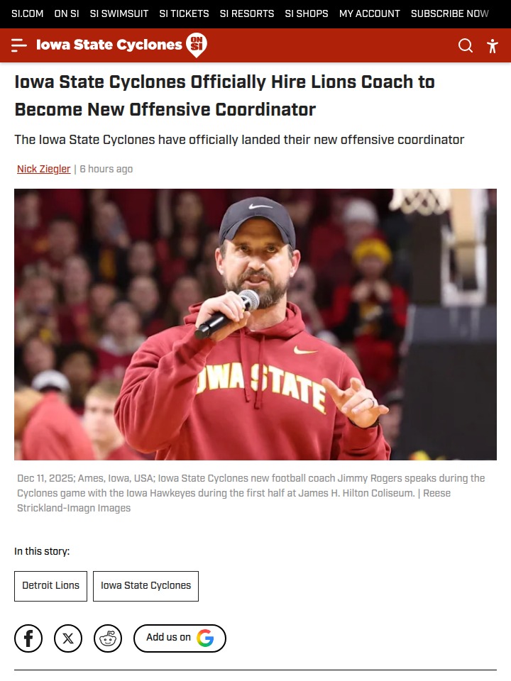 John Camacho+FollowCyclones bring back a familiar face to lead offenseBig news for Iowa State football fans—Tyler Roehl, who helped guide the Cyclones to one of their best seasons ever, is officially returning as offensive coordinator. After a year coaching tight ends with the Detroit Lions (including working with standout Sam LaPorta), Roehl is back in Ames to help steady the ship during a time of major change. With new head coach Jimmy Rogers and several staff moves, this hire could be key to keeping talent and building momentum. What do you think—will Roehl’s NFL experience give the Cyclones an edge next season? #Sports #Football #IowaState00Share