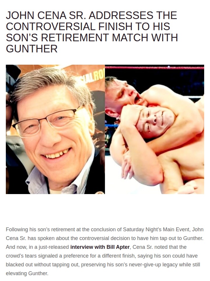 Stacie Lee+FollowCena’s Legacy: Did the Tap-Out Ruin It?So, what do you all think about the way Big Match John’s final bout ended? John Cena Sr. just weighed in, saying he wished the match with Gunther ended with Cena blacking out instead of tapping out. That would’ve kept the ‘never give up’ mantra alive, even as Gunther got his big win. The crowd was clearly emotional—did WWE get this one wrong? Let’s hear your takes on this controversial finish and what it means for Cena’s legacy. #Sports #Wrestling #JohnCena20Share