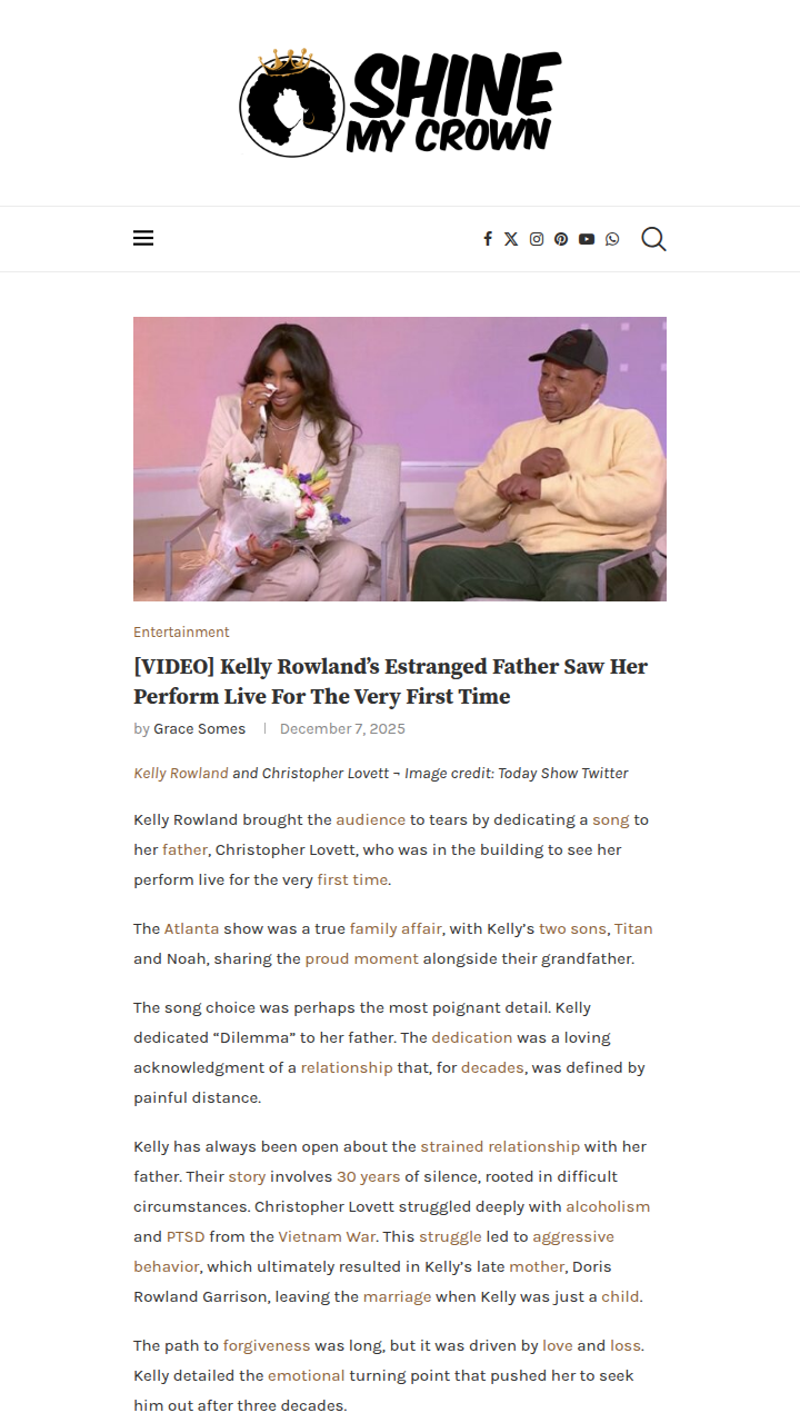 normancrystal+FollowKelly Rowland’s emotional first show for her dadSeeing Kelly Rowland dedicate her hit song “Dilemma” to her father, Christopher Lovett, during her Atlanta show was a powerful moment—especially since it was the first time he’d ever seen her perform live. After 30 years of silence and a complicated family history, Kelly’s decision to reconnect with her dad after her mother’s passing shows just how much love and forgiveness can change a family. Her two sons were there, too, making it a true family milestone. It’s a reminder that it’s never too late to heal old wounds. What moments have helped you reconnect with family? #Entertainment #Music #KellyRowland20Share