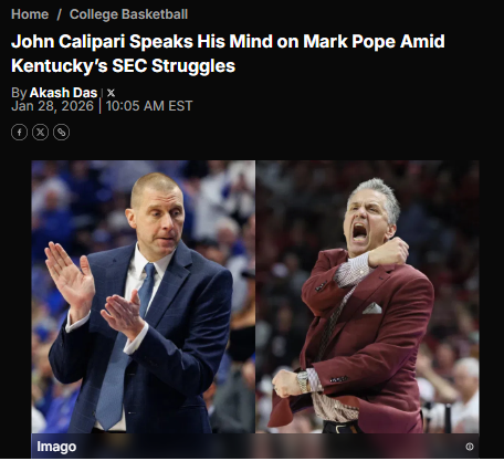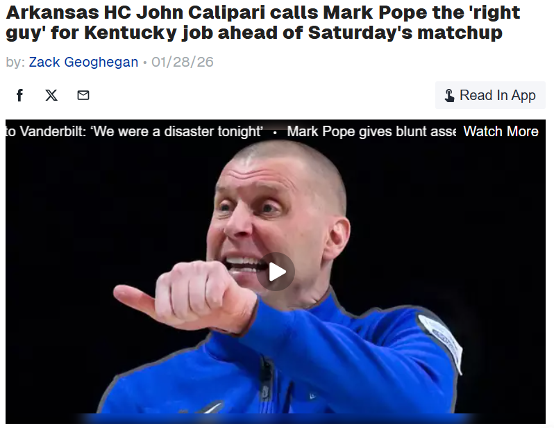 EchoingEagle+FollowKentucky vs Arkansas: Coaches’ showdown heats upJohn Calipari, now at Arkansas, didn’t hold back in praising Kentucky’s Mark Pope, calling him the “right guy” for the Wildcats—even as Kentucky’s season has had its ups and downs. Pope’s early success, including a Sweet 16 run and a record number of big wins, has fans buzzing, but Arkansas is currently outplaying Kentucky in the SEC. With emotions still running high from last year’s dramatic matchup, Saturday’s game in Fayetteville is shaping up to be a must-watch. Who do you think will come out on top this time? #Sports #KentuckyBasketball #ArkansasBasketball00Share
