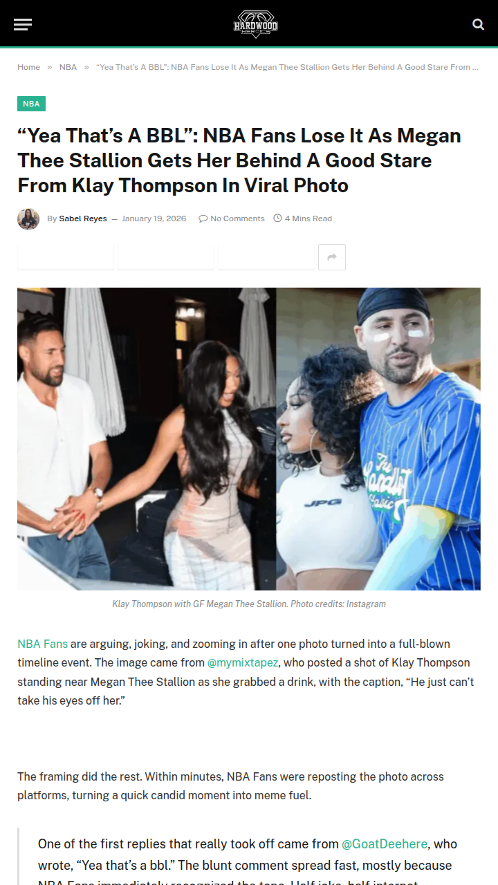 Theresa Boyd+FollowKlay & Megan Thee Stallion: NBA Fans ReactDub Nation and NBA Twitter were on fire after a mini-golf clip of Klay “Game 6” Thompson and Megan Thee Stallion went viral. Fans couldn’t agree—some loved the playful PDA, others thought Megan was stealing the show, and a few joked about Klay’s body language. The debate only heated up when Walt Frazier’s comment about Klay’s “real claim to fame” being Megan drew backlash. Warriors fans weren’t having it—reminding everyone Klay’s a four-time champ, not just a headline. Wild day for the Splash Bro! #Sports #Basketball #KlayThompson51Share