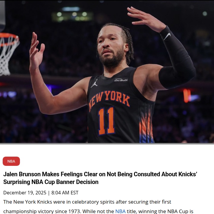 Patrick Gonzales+FollowKnicks fans split on NBA Cup banner callThe Knicks just snapped a 52-year title drought by winning the NBA Cup, but there’s a twist—no banner is going up at Madison Square Garden. Jalen Brunson, who led the charge, wasn’t even asked about the decision, though he’s not losing sleep over it. Some say a banner is a must for any championship, while others think MSG should only honor the biggest wins. With Brunson playing at an MVP level and the Knicks sitting near the top of the East, the focus is shifting to bigger goals. Would you want to see a banner for the NBA Cup? #Sports #Basketball #Knicks10Share