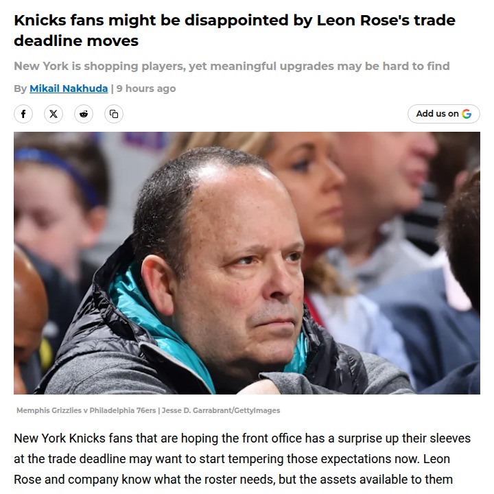 Amy Tanner+FollowKnicks trade deadline buzz: Keep expectations realKnicks fans hoping for a blockbuster trade this deadline might want to brace themselves. The front office is working the phones, but limited assets mean New York is more likely to make a small move—like swapping Guerschon Yabusele for someone like Nick Richards—than land a game-changer. Depth behind Karl-Anthony Towns and Mitchell Robinson is a real concern, especially with Robinson’s injury history. And while the Knicks need a steady backup guard, pulling off multiple upgrades seems unlikely. How do you feel about the team possibly prioritizing one need over another? Would you rather see them stand pat or make a minor tweak? #Sports #Basketball #Knicks20Share