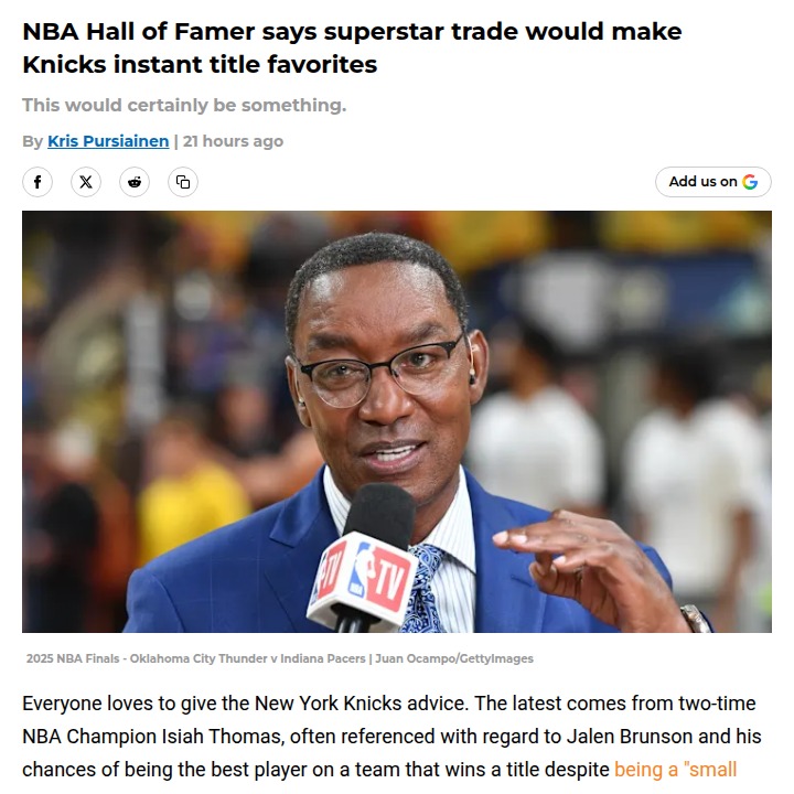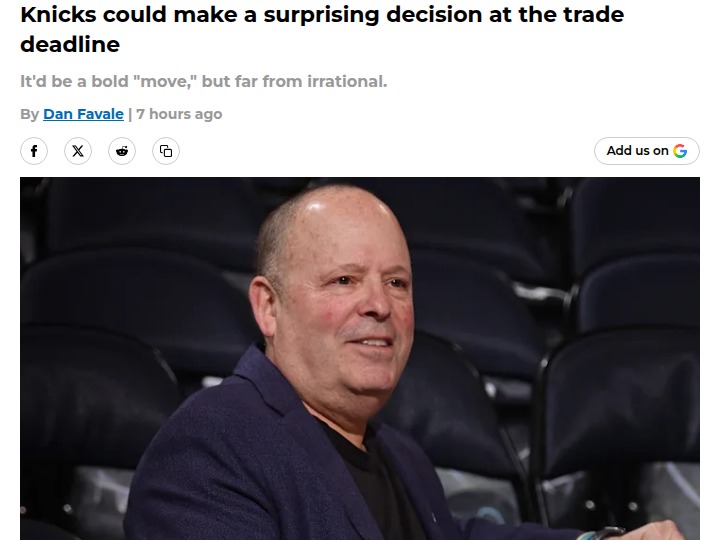 Patrick Gonzales+FollowKnicks’ trade deadline could set up a bigger summerThe Knicks might actually stand pat at the trade deadline, and that could be a game-changer for their future. Instead of making a minor move now, New York could be saving its assets for a blockbuster deal this summer—think Giannis or Jaren Jackson Jr. While fans are itching for immediate upgrades, holding off could mean a real shot at landing a superstar when the market shifts. Would you rather see the Knicks go all-in for a backup now, or keep their powder dry for a potential franchise-altering move? Let’s hear your take! #Sports #Basketball #Knicks00Share