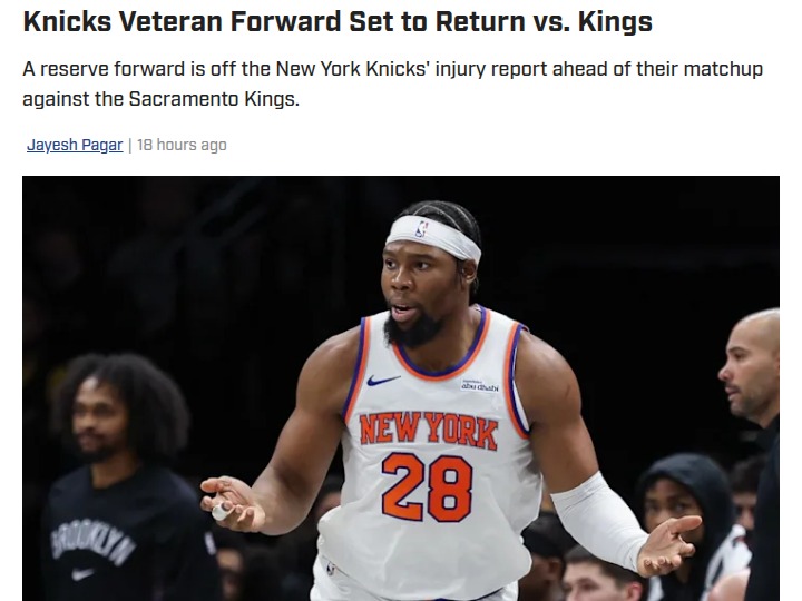 Nicole Obrien+FollowKnicks get a boost as Yabusele returns vs KingsGuerschon Yabusele is back in the Knicks lineup just in time for their matchup against the Kings, and this could be a game-changer for New York. After battling a quad injury, Yabusele’s return gives the Knicks some much-needed depth up front, especially with the team’s rotation stretched thin lately. Meanwhile, Landry Shamet is making solid progress in his shoulder rehab, but he’ll still be out for his 25th straight game. With the Kings struggling this season, do you think Yabusele’s return could help the Knicks take control and keep their playoff push strong? #Sports #Basketball #Knicks00Share