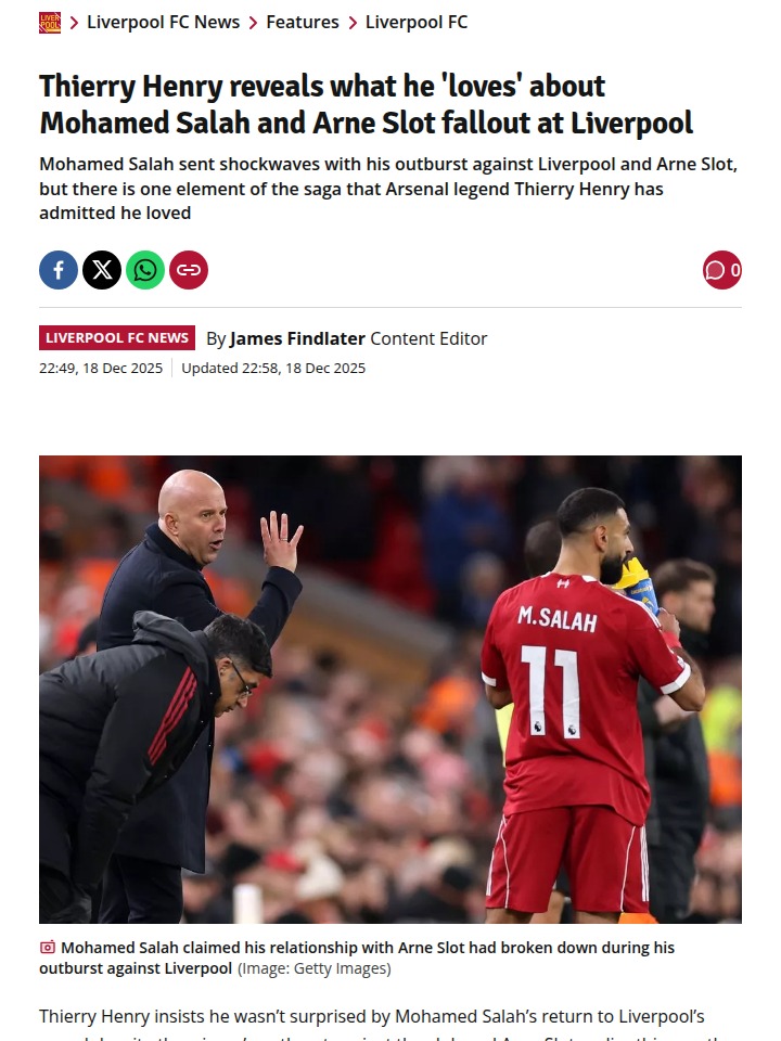 watkinsross+FollowSalah & Slot Drama: Reds Fans ReactWow, what a week for the Reds! After Mo Salah’s fiery comments about feeling thrown under the bus by Liverpool and Arne Slot, I thought we might’ve seen the last of the Egyptian King at Anfield. But Thierry Henry wasn’t shocked to see Salah back on the pitch against Brighton. Props to the Kop for backing both Slot and Salah—shows real class. Do you think this saga is really over, or is there more to come? #Sports #Soccer #LFC00Share