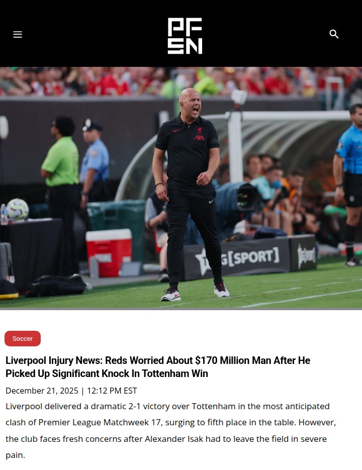 rogerschristine+FollowIsak’s Injury Overshadows Reds’ Win at SpursTough break for the Reds despite a crucial 2-1 win over Spurs—Alexander Isak, our new Swedish ace, limped off after a late challenge from Van de Ven. While Isak got his goal, fans are now sweating over a possible ACL injury that could sideline him for the season. The real drama? No card for Van de Ven, and Liverpool supporters are fuming. Slot’s update wasn’t reassuring—fingers crossed for good news this week. #Sports #Soccer #LFC00Share