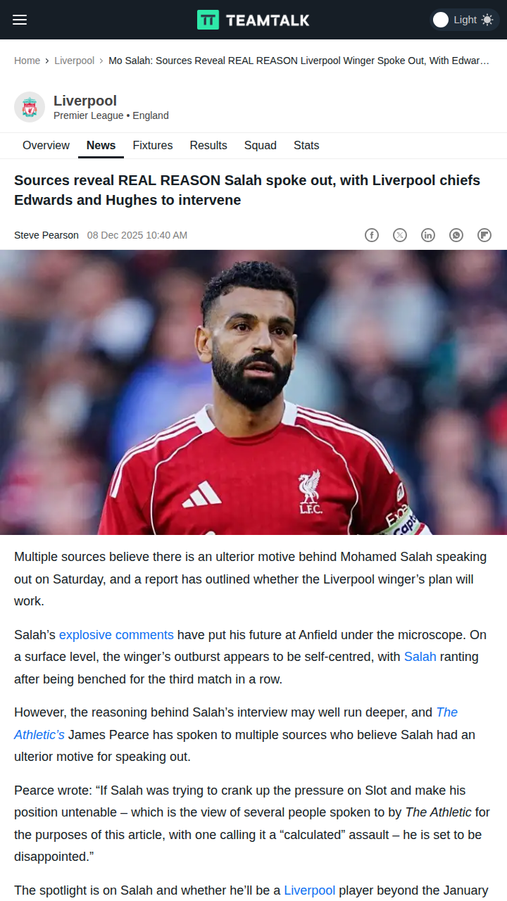 Tara Moran+FollowSlot vs Salah: Reds’ Drama Overshadows Inter WinBig night at the San Siro as the Reds finally snapped Inter’s home UCL streak, but all anyone’s talking about is the Mo Salah saga. With King Mo left out again, Szoboszlai stepped up from the spot. Slot’s post-match banter with Seedorf hinted the ball’s in Salah’s court for a truce. Is this the start of a new era, or will Salah’s absence keep casting a shadow? Thoughts on how this affects our top 4 push? #Sports #Soccer #LFC00Share