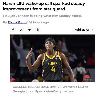 CrimsonChameleon+FollowLSU’s Flau’jae Johnson turns setback into a comebackLosing back-to-back games to Kentucky and Vanderbilt was a tough pill for LSU fans, especially when Flau’jae Johnson finished with zero points and just one rebound. But here’s what’s wild: since Coach Mulkey called her out, Johnson has totally flipped the script. She’s become a rebounding machine, even grabbing 10 boards and dropping 23 points against Oklahoma—the top rebounding team in the country! It’s clear that when Johnson crashes the glass, LSU looks like a different squad. What do you think sparked this turnaround, and how far can this new energy take the Tigers? #Sports #LSU #FlaujaeJohnson00Share