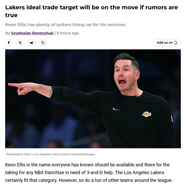 Nicole Obrien+FollowLakers vs Kings: Keon Ellis Trade BuzzWith the trade deadline looming, the Lakers are reportedly eyeing Keon Ellis, the Kings’ 3-and-D specialist. But with nearly 10 teams in the mix, the price for Ellis is skyrocketing—possibly a late first-rounder. Is he worth it? The LakeShow needs help, but Rob Pelinka might hold out for bigger moves. Would you pay up, or wait for a better fit? #Sports #Basketball #LakeShow00Share