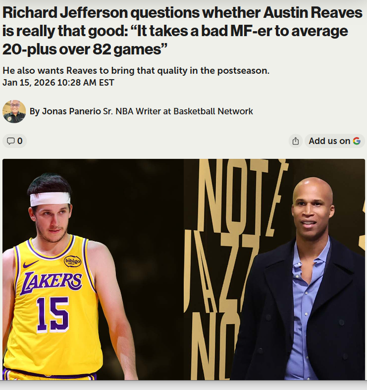 Theresa Boyd+FollowIs Austin Reaves Worth Max Money for Lakers?Lakers Nation, what do you think about Richard Jefferson throwing shade at Hillbilly Kobe? RJ says AR hasn’t proven he’s a true 20+ PPG guy over a full season, and questions if he’s really a foundational piece for the Purple and Gold. With trade rumors swirling and a possible $241M contract on the line, is Reaves the right guy to build around with King James and Luka, or should the Lakers look for more defense? Let’s hear your takes! #Sports #Basketball #Lakers11Share