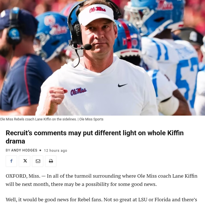 Amy Williams+FollowLane Kiffin drama: What recruits are really hearingOle Miss fans, here’s a twist in the Lane Kiffin saga—top recruits say Kiffin is all-in on the Rebels, not hinting at any moves elsewhere. With early signing day just around the corner, you’d expect rumors to swirl if he was talking to other schools, but so far, recruits are only hearing about Ole Miss. This doesn’t guarantee he’s staying, but it does make you wonder: is the drama overblown, or is something brewing behind the scenes? How do you think this uncertainty impacts the team and future recruiting? #Sports #Football #LaneKiffin00Share