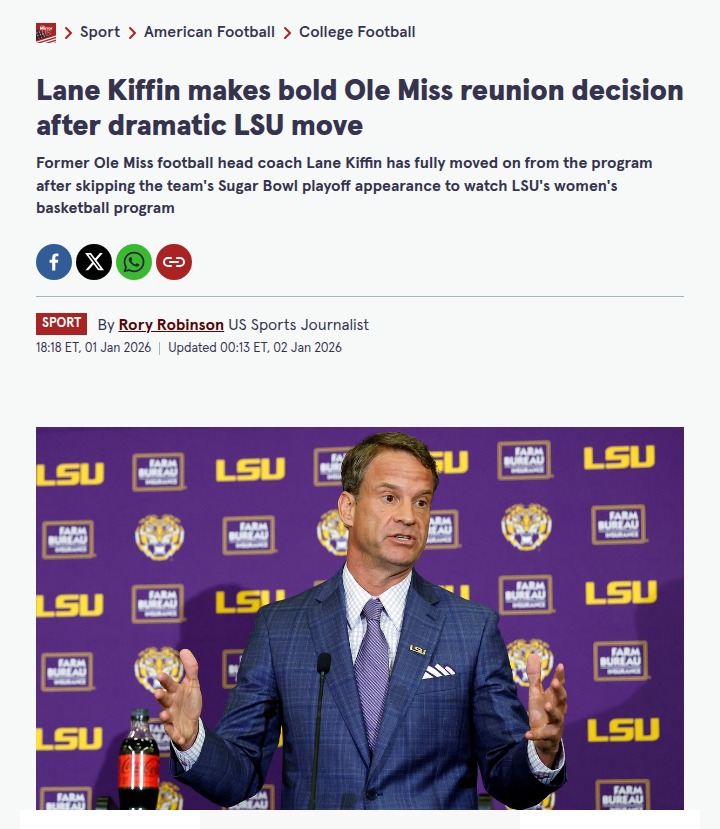 CrimsonChameleon+FollowLane Kiffin’s LSU debut stirs up Baton RougeLane Kiffin made quite the entrance at LSU, showing up hand-in-hand with women’s basketball coach Kim Mulkey before a packed crowd—even as his old Ole Miss squad was battling Georgia in the Sugar Bowl. The buzz was electric, but the Tigers’ women’s team lost a heartbreaker at the buzzer. Meanwhile, Ole Miss pulled off a big win without Kiffin, who wanted to coach them one last time but was denied. With a massive contract and high expectations, Kiffin’s arrival signals big changes for LSU football. What do you think—will he bring the Tigers back to national glory? #Sports #LSU #LaneKiffin00Share