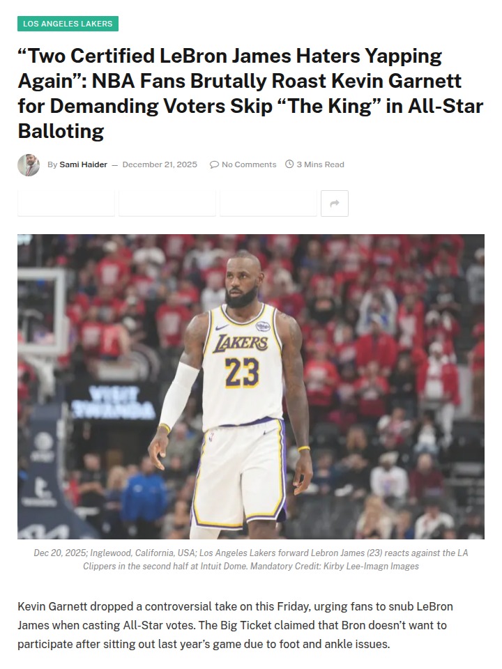 summersivan+FollowKG & The Truth Still Can't Let Go of The KingLooks like The Big Ticket and The Truth are at it again, stirring the pot with their anti-King James takes. KG went on his podcast telling fans to skip LeBron in All-Star voting, claiming Bron won’t play anyway. But NBA Twitter wasn’t having it—fans roasted Garnett and Pierce for their never-ending LeBron obsession. This rivalry runs deep, but let’s be real: All-Star Weekend just isn’t the same without The Chosen One. #Sports #Basketball #LeBronJames00Share