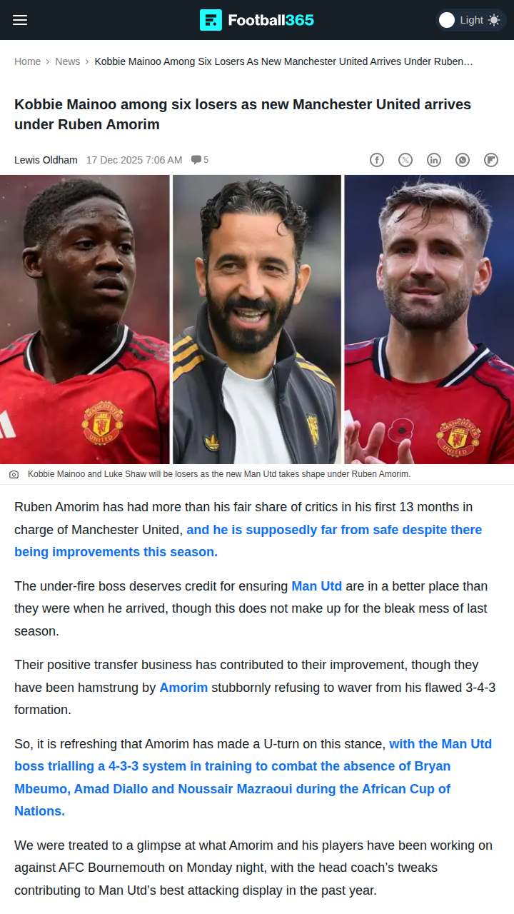 Allison Travis+FollowMan United’s New Era: Mainoo & Dorgu in Trouble?Red Devils fans, what do you make of Amorim finally ditching his stubborn 3-4-3 for a 4-3-3 against Bournemouth? The attack looked sharp, but it’s clear some rising stars like Mainoo and Dorgu could be on the outside looking in. With Dalot and Bruno thriving, is this the right call for the long haul? Or are we risking losing future legends? Let’s hear your take! #Sports #Soccer #MUFC00Share