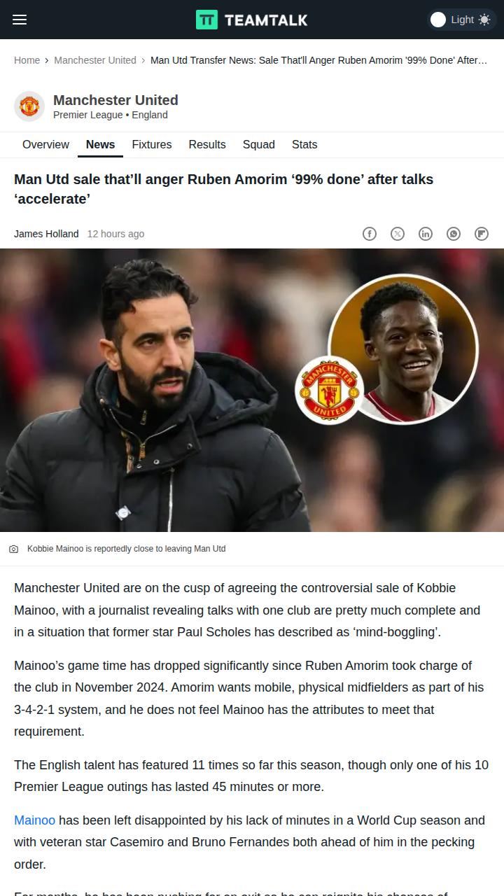 Charles Mills+FollowMainoo Snub: Amorim’s Risky Man Utd CallRed Devils fans, what do you make of Amorim’s decision to keep Kobbie Mainoo on the bench? The boss defended his move by pointing to the struggles of other academy lads like Amass, Obi, and Collyer, but many feel Mainoo deserves his shot—especially with legends like Scholes and Rio backing him. With Bruno and Casemiro working well, is Amorim right to stick with experience, or is he stalling a future star? The January window could get interesting… #Sports #Soccer #MUFC00Share
