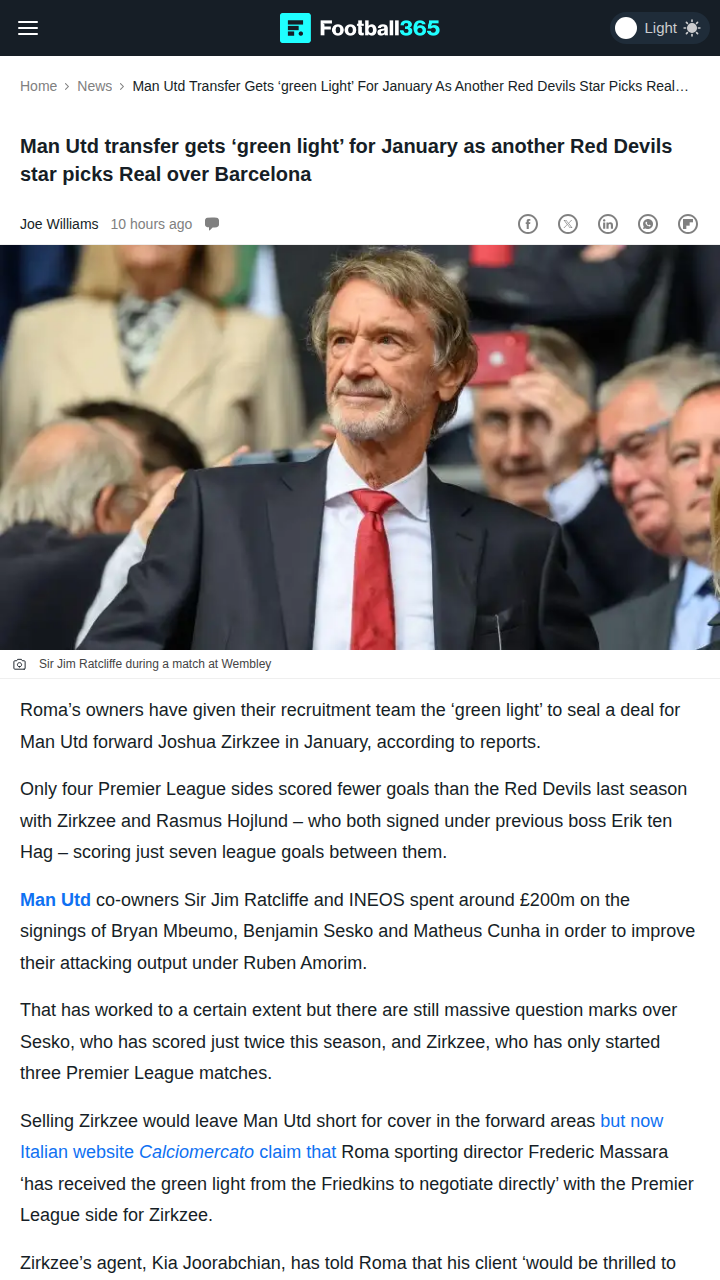 Tara Moran+FollowZirkzee Saga: Roma Eyes Red Devils’ Young GunLooks like the Zirkzee-to-Roma rumors are heating up! Roma’s board has given the green light to negotiate for the young Red Devil, who’s struggled for minutes at Old Trafford. With the Friedkins backing a move and Zirkzee’s agent saying he’d love a Serie A return, this could be a big January shakeup. Meanwhile, Mainoo is reportedly favoring a Real Madrid switch over Barca—huge if true! What do you all think: should United cash in on Zirkzee or keep him for depth? #Sports #Soccer #ManUtd00Share