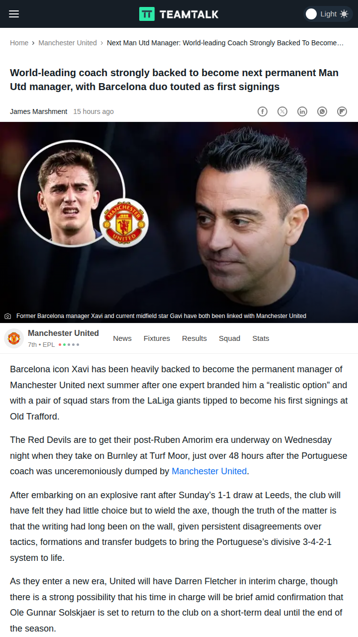 kochcandice+FollowXavi to Man Utd? Barca Duo Rumors Heat UpBig news for Red Devils fans: Barcelona legend Xavi is now the hot favorite to take over as Manchester United’s next permanent manager. With the post-Amorim era just kicking off, insiders say Xavi could bring in Barca’s young guns Gavi and Marc Bernal as his first signings. If this happens, it could spark a new rivalry with LaLiga and shake up the Premier League! What do you think—would Xavi’s style fit Old Trafford? #Sports #Soccer #ManUtd00Share