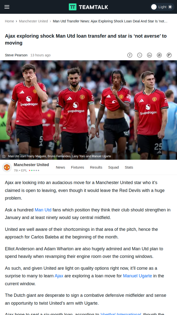 Maurice Miller+FollowAjax Eyeing Ugarte: United’s Midfield DilemmaBig news out of Old Trafford—Ajax are reportedly making a surprise move for Red Devils’ midfield enforcer Manuel Ugarte. With United’s engine room already running thin, letting Ugarte go (even on loan) could leave King Eric’s squad exposed. But word is, Ugarte’s not against the switch if it means more minutes before the World Cup. Would Ajax’s offer force United’s hand, or is this just transfer window smoke? #Sports #Soccer #ManUtd00Share