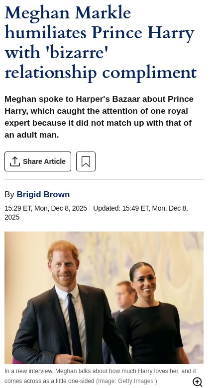 Gina Reynolds+FollowMeghan’s Compliment to Harry Sparks Debate 🤔Did Meghan Markle just shade Prince Harry in her latest Harper's Bazaar interview? Fans are buzzing after royal watcher Jane Barr called Meghan’s description of Harry “childlike” and even compared it to how she’d talk about their son, Archie. Some think Meghan’s words make Harry look less like a partner and more like a kid. Is this just Meghan being loving, or is there more to it? The fandom is split! #Entertainment #Celebrity #MeghanMarkle01Share