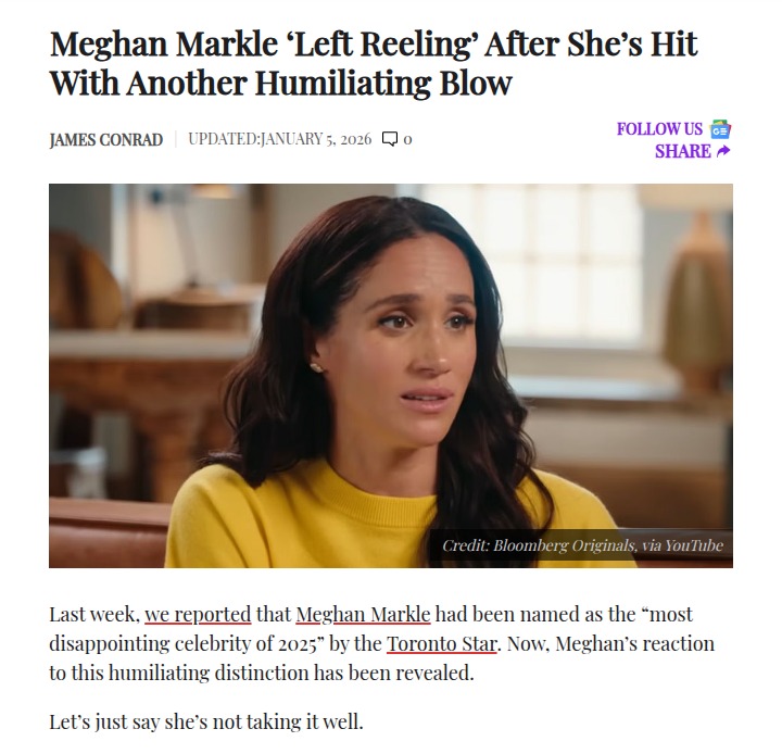 Leah Gonzales+FollowMeghan Markle ‘Shaken’ by Toronto Star Shade 😳Meghan Markle is reportedly devastated after being labeled the “most disappointing celebrity of 2025” by the Toronto Star. Sources say this hit especially hard since Toronto was once her safe haven during her Suits days. The fandom is split: some say the criticism is deserved after her Netflix downgrade, while others think the press is being way too harsh. Is this the lowest point for Meghan, or will she bounce back? #Entertainment #Celebrity #MeghanMarkle155Share