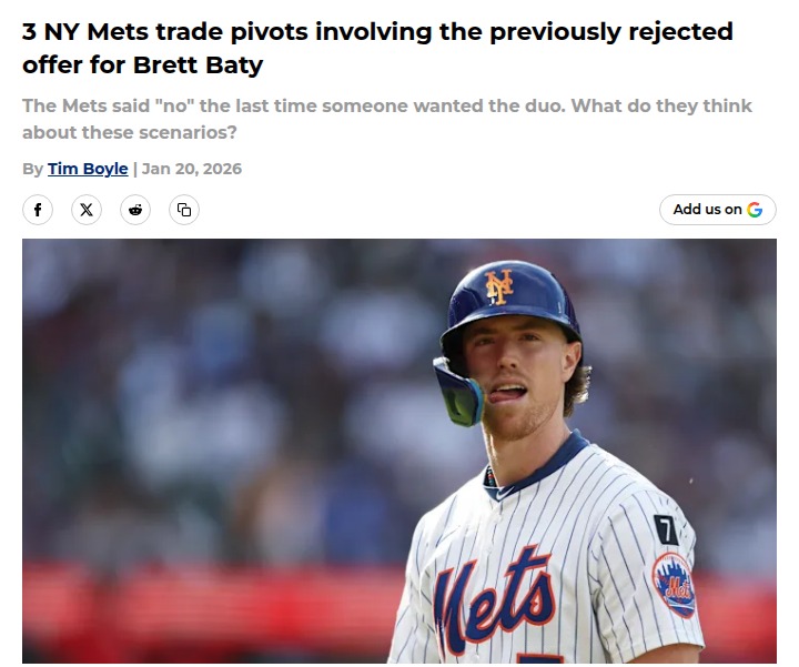 Renee Ramirez+FollowMets shake up: What’s next for Brett Baty?Every time the Mets front office publicly backs a player, that guy seems to get traded soon after—just ask Jeff McNeil and Luisangel Acuna. Now Brett Baty is the latest to get the Stearns stamp of approval, but with shifting plans for his position, fans are left wondering if he’s next on the move. Is Baty destined to be a utility man, or will the Mets flip him for a true outfielder? With prospects like Carson Benge waiting in the wings, the Mets’ lineup could look very different by Opening Day. What do you think—should Baty stay or go? #Sports #Baseball #Mets00Share