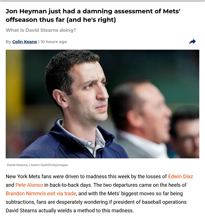 Andrea Castillo+FollowMets fans brace for a wild offseason shakeupLosing Edwin Díaz and Pete Alonso back-to-back has Mets fans reeling, and even MLB insiders like Jon Heyman are openly questioning what’s going on in Queens. With Brandon Nimmo also gone, the Mets’ biggest moves so far have been painful subtractions. Heyman called out the front office, saying even a blockbuster trade for Tarik Skubal might not be enough to fix the mess. The real question: will David Stearns pull off a franchise-altering move to turn things around, or are we looking at a long, tough season ahead? Mets fans, what do you think it’ll take to change the narrative? #Sports #Baseball #Mets00Share