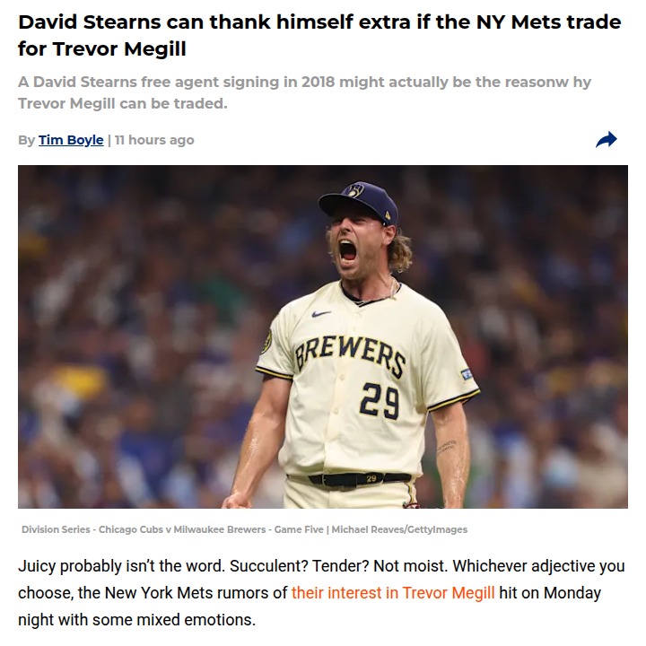 Timothy Huff MD+FollowMets-Yankees Eye Megill: Closer Rivalry BrewingMets fans, how would you feel if Stearns brings Trevor Megill to Queens? The Big Apple rivalry could heat up with both the Mets and Yankees reportedly after the Brewers’ All-Star closer. Megill’s 51 saves in two years and team control make him a prime target, but the price won’t be cheap. If Stearns pulls this off, he’s playing 4D chess with his own 2018 move. Would you rather see Megill or stick with Edwin Diaz as the main man? #Sports #Baseball #Mets00Share