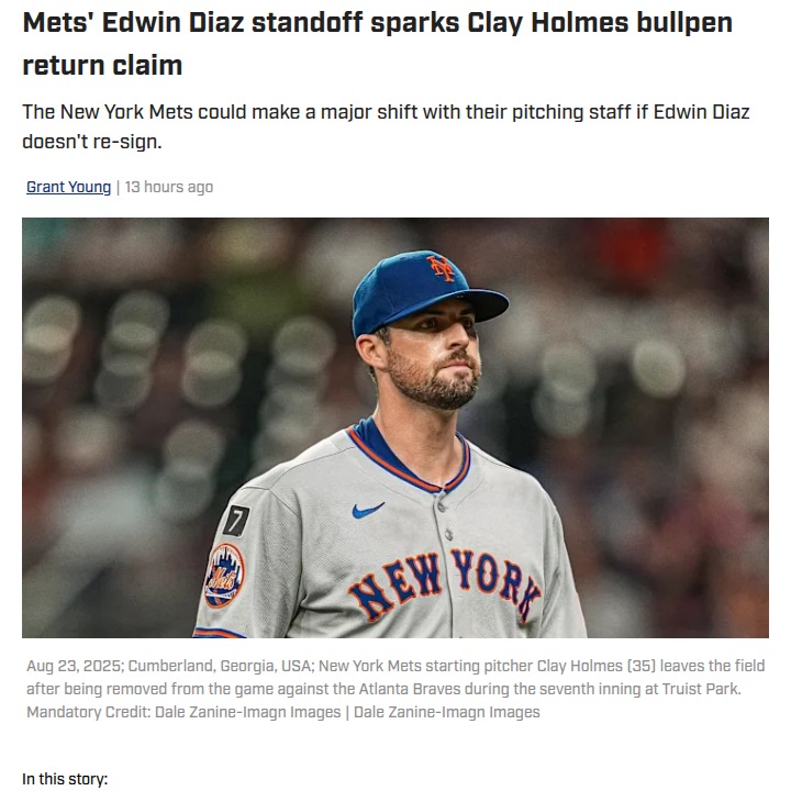Renee Ramirez+FollowMets’ pitching shakeup: Holmes back to the bullpen?Clay Holmes turned heads this season by shifting from the bullpen to a starting role for the Mets, racking up a solid 12-8 record and 3.53 ERA. Now, with the Mets possibly losing Edwin Diaz and adding Devin Williams, there’s buzz Holmes could return to the bullpen—right after proving himself as a starter! This move could help balance the pitching staff, especially if the Mets sign another starter. Would you rather see Holmes stay in the rotation or anchor the bullpen again? Let’s hear your take on what’s best for the Mets’ future! #Sports #Baseball #Mets00Share
