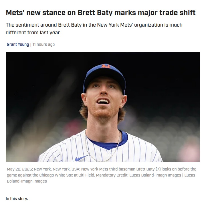 jillian59+FollowBaty’s Big Turnaround: Mets’ Hot Corner ShakeupWho saw this coming? Just a year ago, Brett Baty looked like trade bait, but after a red-hot second half in 2025, the Mets have made him nearly untouchable. With Vientos cooling off and McNeil likely on the move, Baty’s glove and bat have locked down third base in Queens. This is a huge shift from last offseason—insiders say he’s now safer than ever. What do you think: Is Baty the Mets’ long-term answer at the hot corner? #Sports #Baseball #Mets00Share