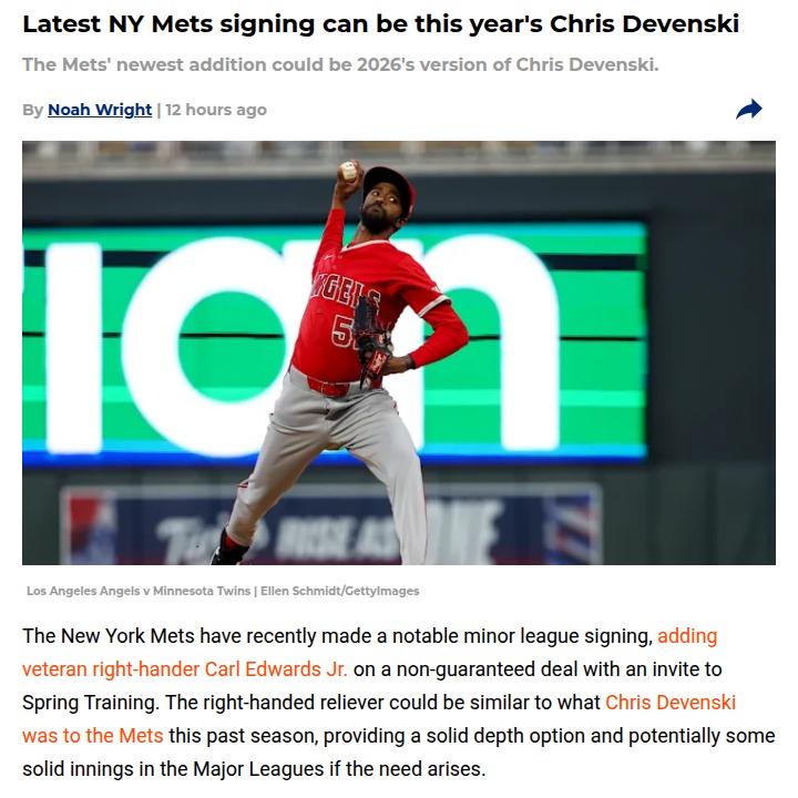 Renee Ramirez+FollowCould Carl Edwards Jr. be the Mets’ next bullpen steal?The Mets just picked up Carl Edwards Jr. on a minor league deal, and this move could be a quiet game-changer. Edwards, once a key piece in the Cubs’ 2016 World Series bullpen, has bounced around the league but still flashes serious strikeout stuff. His recent numbers in Triple-A and the Mexican League show he’s got more left in the tank, especially with improved control. Last year, Chris Devenski came in as a depth arm and ended up delivering clutch innings for the Mets. Could Edwards be this year’s surprise bullpen hero? Mets fans, what do you think—smart gamble or just another flyer? #Sports #Baseball #Mets00Share