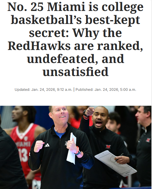 AmberAbyss+FollowMiami RedHawks’ perfect run shakes up the MACTravis Steele’s Miami RedHawks are rewriting the record books with a 20-0 start—the best in Mid-American Conference history! After a rocky stint at Xavier, Steele’s growth as a coach is fueling Miami’s rise, with the team now cracking the AP Top 25 for the first time since the Wally Szczerbiak era. What’s wild is how this squad wins: gritty overtime battles, high-scoring shootouts, and a roster that’s all about team-first values. But with March Madness on the horizon, will this dream run be enough for an NCAA Tournament bid? Let’s hear your take: is Miami for real this year? #Sports #MiamiRedHawks #CollegeBasketball00Share