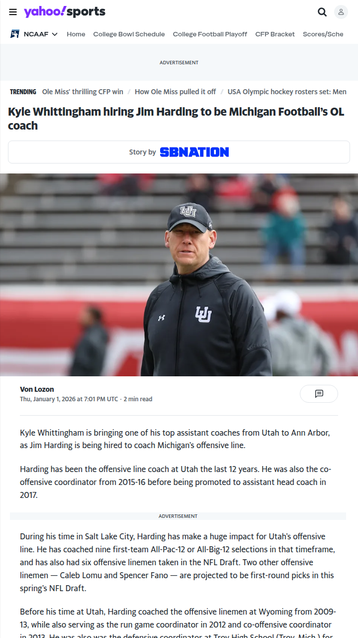 John Camacho+FollowWolverines Land Utah’s OL Guru HardingBig Blue just scored a major win in the trenches! Kyle Whittingham is bringing Jim Harding, the mastermind behind Utah’s powerhouse O-lines, to Ann Arbor. Harding’s track record is stacked—nine first-team all-conference linemen and six NFL Draft picks. With Harding on board, Michigan’s O-line could be even nastier next season. How do you think this hire stacks up against our Big Ten rivals? #Sports #Football #MichiganFootball00Share