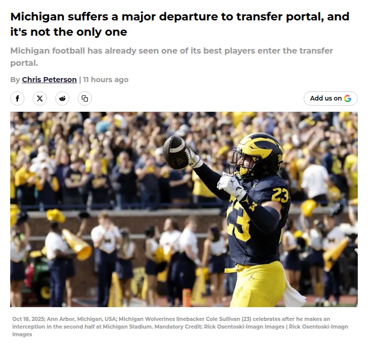 Jeffrey Armstrong+FollowMichigan football rocked by transfer portal exitsLosing Cole Sullivan to the transfer portal is a real gut punch for Michigan football fans—he was set to be a defensive cornerstone after a standout season, and now his future in Ann Arbor is up in the air. Add in Elijah Dotson, a promising young defensive back, also entering the portal, and it’s clear the Wolverines are facing a serious challenge keeping their roster intact. With coaching roles still unsettled, it’s no wonder players are weighing their options. How do you feel about these changes, and what do you think Michigan needs to do to steady the ship? #Sports #Football #MichiganFootball00Share