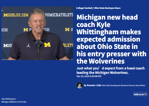 glen25+FollowMichigan’s new coach takes aim at Ohio StateKyle Whittingham wasted no time embracing Michigan’s biggest rivalry. At his first press conference, he joked that he now “dislikes” Ohio State—music to Wolverine fans’ ears. After a rocky coaching transition, Michigan is betting on Whittingham’s experience to shake things up and bring fresh energy to Ann Arbor. With his history under Urban Meyer and no Big Ten experience, he’s got a lot to prove. Can Whittingham rally the team and fanbase to take back the edge in The Game? What kind of culture shift do you want to see? #Sports #Football #MichiganFootball00Share