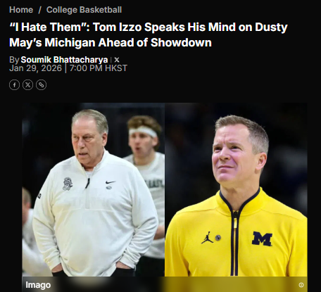 AmberAbyss+FollowIzzo fires up Michigan State-Michigan rivalryTom Izzo isn’t holding back as Michigan State gears up to face Michigan at the Breslin Center. He openly admits, “I hate them,” but says it’s all about respect in this fierce rivalry. Both teams are on hot streaks—Michigan’s offense is on fire, while the Spartans’ defense is locking teams down. Izzo’s track record against Michigan is impressive, but Dusty May’s Wolverines are looking to flip the script this season. With so much at stake, who do you think has the edge? Is it defense or offense that will decide this classic showdown? #Sports #MichiganState #MichiganWolverines00Share