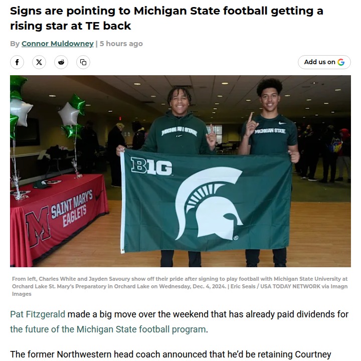 glen25+FollowMichigan State’s rising star TE likely stayingJayden Savoury, the freshman tight end everyone’s been buzzing about, looks set to stick with Michigan State after the coaching staff shakeup. The return of tight ends coach Brian Wozniak has not only reassured Savoury’s family but also sparked excitement among players and fans. With other key talents hinting at staying, it feels like the Spartans are building something special for 2026. The loyalty to coaches who truly develop players is making a real difference here. How do you feel about the direction the program is heading with these re-hires? #Sports #Football #MichiganState00Share