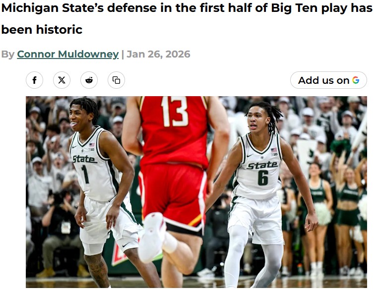 EchoingEagle+FollowMichigan State’s defense is rewriting Big Ten historyMichigan State’s defense isn’t just good—it’s on a historic run, putting up numbers that rival their 2000 championship team. The Spartans top national rankings for defensive efficiency, making life miserable for every opponent in the Big Ten. And despite the chatter, their offense is quietly outperforming recent years, averaging over 79 points per game and ranking higher than the star-studded 2017-18 squad. With a defense this dominant and an offense that’s more than holding its own, MSU might just be the most complete team in the conference. What do you think: is this the year Izzo’s squad goes all the way? #Sports #MichiganState #BigTen00Share