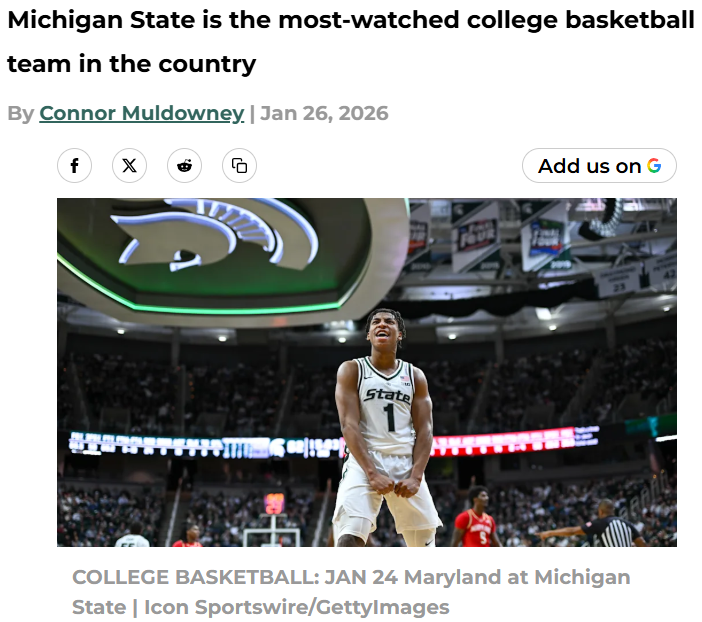 AmberAbyss+FollowMichigan State hoops: Everyone’s watchingMichigan State basketball is officially the hottest ticket in college hoops this season. The Spartans’ electric 18-2 start, even after losing key players, has made them the most-watched team in the country. Whether it’s Tom Izzo’s coaching magic, the team’s elite defense, or standout performances from guys like Jeremy Fears and Coen Carr, fans everywhere are tuning in. For recruits, it’s a dream: big games, big crowds, and the national spotlight. What do you think makes Michigan State so watchable this year? Is it the team’s style, the legacy, or something else? #Sports #MichiganState #CollegeBasketball10Share