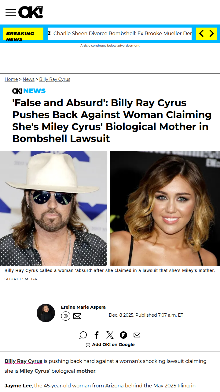 Chad Kemp+FollowMiley Cyrus Mom Lawsuit Twist! 🤯Did anyone else see the wild lawsuit where a woman claimed to be Miley Cyrus’ real mom? She says Billy Ray and Tish hid a secret adoption and cut her off after Miley was born. The judge just tossed the case, but fans are split—some think it’s a cash grab, others wonder if there’s more to the story. This drama is next level! #Entertainment #Celebrity #MileyCyrus02Share