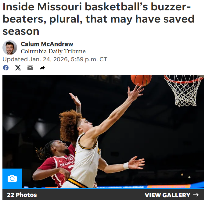Amy Tanner+FollowMizzou stuns Oklahoma with wild buzzer-beatersTwo heart-stopping buzzer-beaters turned Mizzou’s clash with Oklahoma into an instant classic! Mark Mitchell’s game-winning three at the OT horn capped a wild finish, just minutes after Trent Pierce forced overtime with a half-court heave. Mitchell, not known for his three-point shooting, delivered when it mattered most, racking up 25 points. The Tigers bounced back from a tough home loss, while Oklahoma’s heartbreak continues in SEC play. Moments like these are why we love college hoops—what’s your take on the most unforgettable game-winner you’ve seen? #Sports #Basketball #Mizzou00Share
