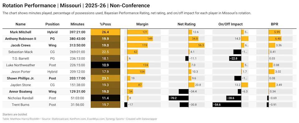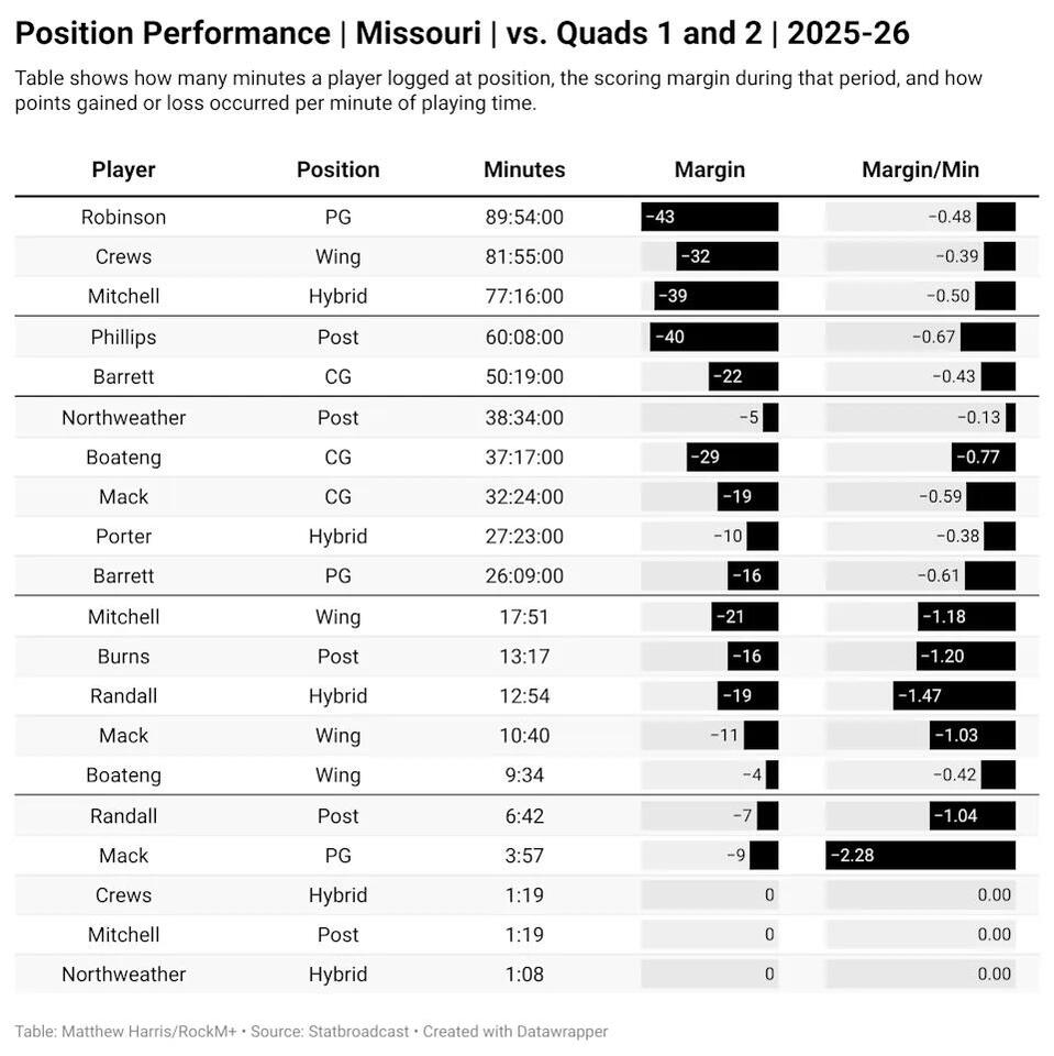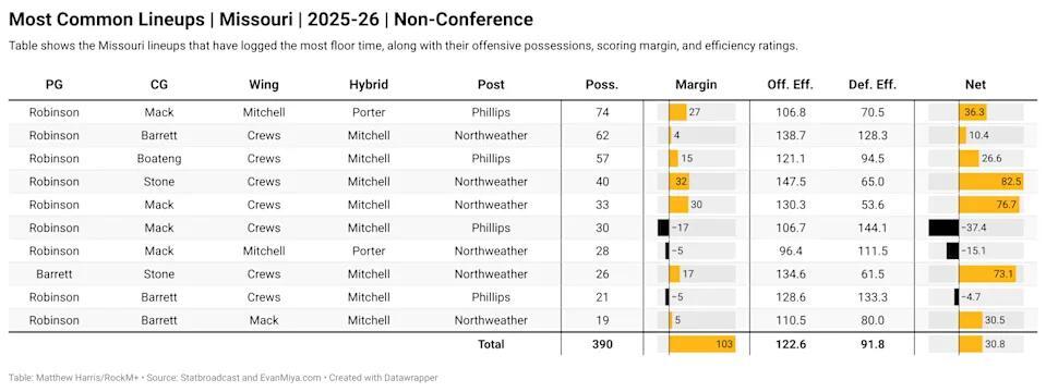 AmberAbyss+FollowWhy Missouri’s rotation is holding them backMissouri’s blowout loss to Illinois wasn’t just about missing shots or bad luck—it’s about the Tigers not playing to their strengths. Despite having athletic wings and proven pick-and-roll talent, Mizzou stuck with a rotation and style that doesn’t fit their roster. The numbers are clear: lineups with stretch bigs like Northweather perform way better, but the team keeps leaning on less effective options. Injuries matter, but the bigger issue is whether the coaching staff will finally make the tough choices to maximize what this group can do. What changes would you make to the rotation? #Sports #Mizzou #CollegeBasketball00Share
