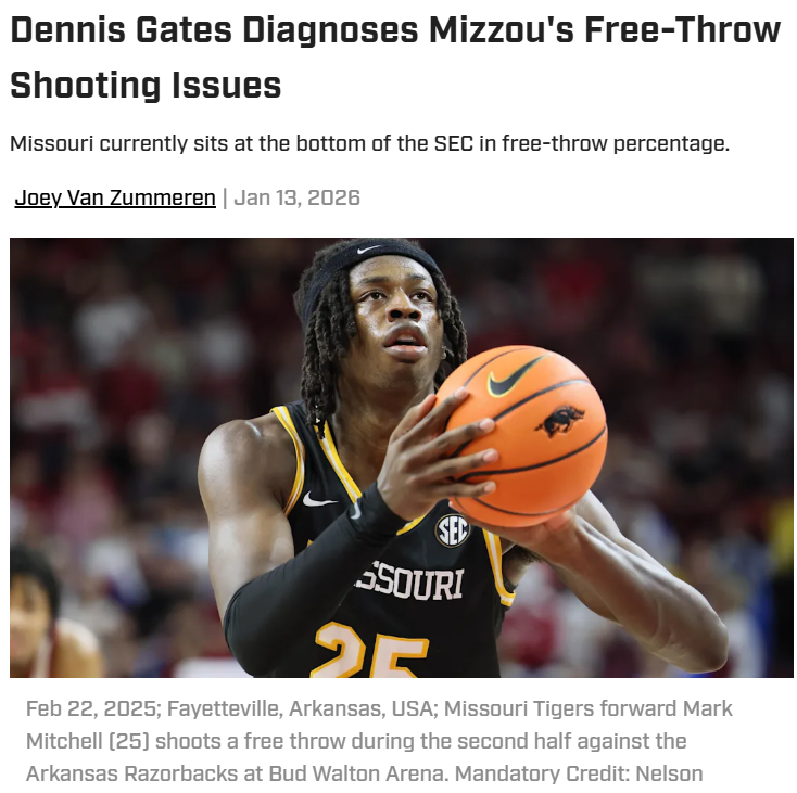 EchoingEagle+FollowWhy Mizzou’s free throws are costing gamesMizzou fans, it’s tough to watch the Tigers leave so many points at the free-throw line this season. Missouri is dead last in the SEC for free-throw percentage, and it’s not just nerves—Coach Gates says it’s about focus and routine under pressure. Even our most reliable guards are struggling, with a huge drop-off from last year. In close games, like the Ole Miss loss, those missed shots really sting. What do you think: Is it mental, physical, or just bad luck? How would you fix Mizzou’s free-throw woes? #Sports #Mizzou #CollegeBasketball00Share