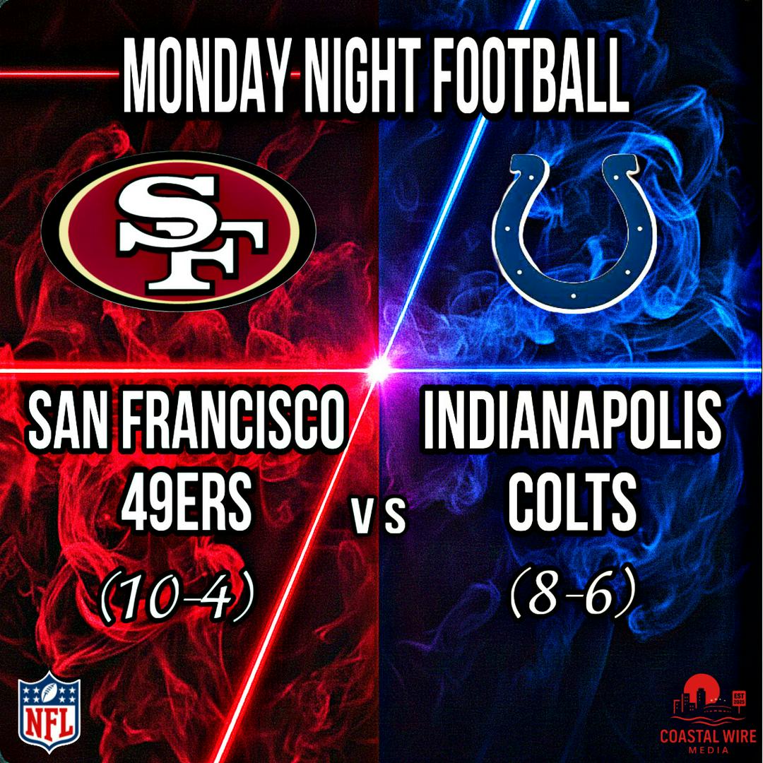Coastal Wire Media+FollowMonday Night Football: 49ers vs Colts Preview The San Francisco 49ers (10–4) head to Indianapolis to face the Colts (8–6) in a pivotal Monday night matchup with playoff implications on the line. San Francisco looks to maintain momentum and solidify its position near the top of the NFC, while Indianapolis remains firmly in the hunt in a crowded AFC playoff race. All eyes will be on the Colts as this marks Philip Rivers second game back from retirement, adding another storyline to an already high stakes showdown. With postseason pressure mounting, both teams will need to bring playoff level intensity under the primetime lights. Expect a physical battle, key coaching adjustments, and major implications for January football. Coastal Wire Media | All Rights Reserved | Est. 2025 #NFL #NFLNews #MondayNightFootball 190Share