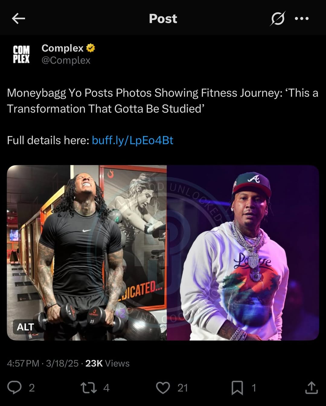 Mr. Thomas Martin MD+FollowMoneyBagg Yo’s Glow-Up Sparks Wild ReactionsMoneyBagg Yo just dropped some serious truth bombs after fans accused him of being a ‘clone’ because he looks so much healthier these days. He’s not here for the negativity—he says he’s just eating better and feeling good, and people need to stop acting like they wanted him to stay on drugs. The rapper’s fitness journey is going viral, and his clapbacks are even better. Would you recognize him now? #Fitness #MoneyBaggYo #FitnessJourney00Share
